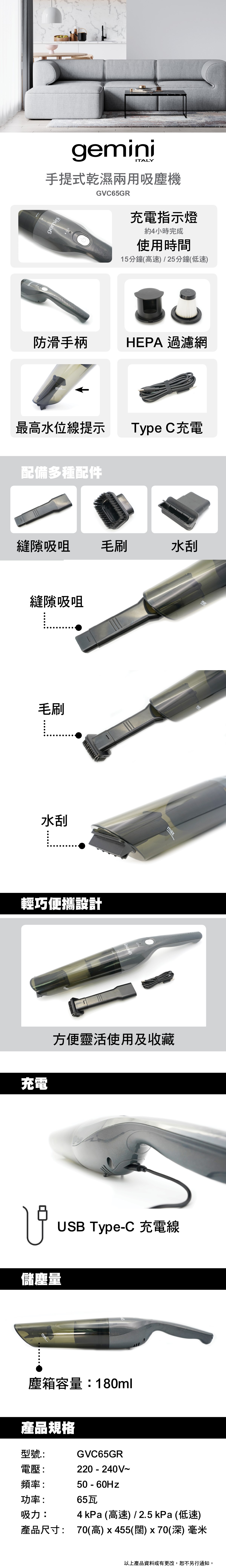 Gemini Rechargeable Handheld Vacuum Cleaner GVC65GR